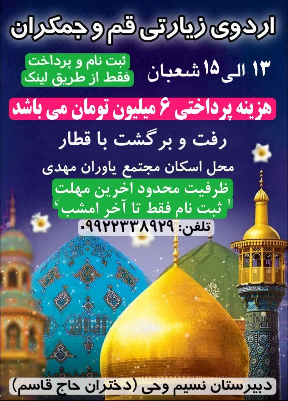 جهت ثبت نام درسفر زیارتی قم و جمکران